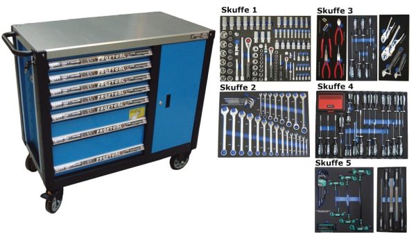 BATO Værktøjsvogn TOMMER med 7 skuffer. 5 skuffer med 208 dele værktøj. Model 9147-208T. Blå
